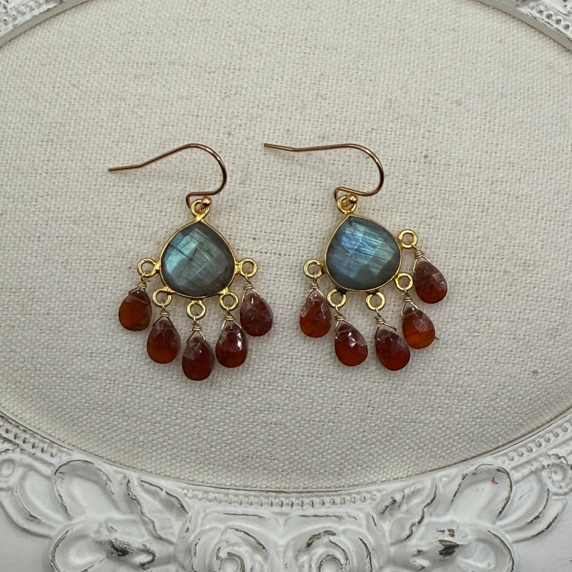 Luminous Allure: Labradorite and Hessonite Garnet Chandelier Earrings